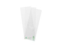 Versatile eco flat PLA bag. Heat sealable at low temperatures or seal with a Vegware sticker: CMVRST45W or CMVRST45 - on our website, here: https://www.friendlypak.co.nz/Products/Commercial-Products - Made from PLA, a renewable material made from plants. Clear, with subtle Vegware messaging in green. Award-winning quality by Vegware, made from plants. Commercially compostable where accepted.