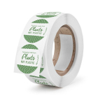 Label 45mm round write-on compostable sticker. Round 45mm eco sticker with space for your writing. Eye-catching 'plants, not plastic' design. Label your food, seal a bag, and shout about your packaging's eco credentials. Paper with a compostable adhesive. Stylish green and white. Award-winning quality by Vegware, made from plants, not plastic. 'packaging made from plants - Vegware'
