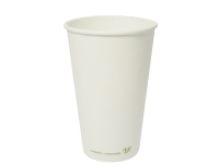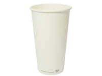 Hot Cup white PLA-lined 20oz (600ml Brim) - 89mm (lid) x 151mm. Eco single wall hot cup. Fits Vegware's 89-Series lids. For coffee, tea and all hot drinks, or soup to go. Also ideal portion control for chips or fried treats. Sustainable board with a plant-based PLA lining. Crisp white, with Vegware messaging in green. Award-winning quality by Vegware, made from plants.