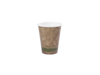 Hot Cup kraft PLA-lined 10oz (370ml Brim) - takes 89mm lid Eco single wall hot cup. Fits Vegware's 89-Series lids. For coffee, tea and all hot drinks, or soup to go. Also ideal portion control for chips or fried treats. Sustainable board with a plant-based PLA lining. Brown kraft, with Vegware messaging in green. Award-winning quality by Vegware, made from plants.