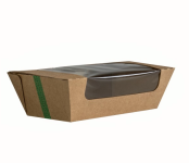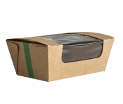 No Leak.* Ideal for hot or cold, for delivery or food to go. Suitable for hot cabinets – including Window boxes. * ‘No Leak’ applies to the folded microflute corners and seams – does not apply to the seal of the NatureFlex™ windows if you were to fill the box up to the window seal. No Leak excludes: TKMFB5X5