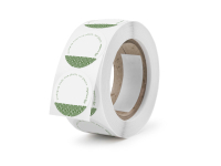 Label 45mm round write-on compostable sticker. Round 45mm eco sticker with space for your writing. Eye-catching 'plants, not plastic' design. Label your food, seal a bag, and shout about your packaging's eco credentials. Paper with a compostable adhesive. Stylish green and white. Award-winning quality by Vegware, made from plants, not plastic. 'packaging made from plants - Vegware'