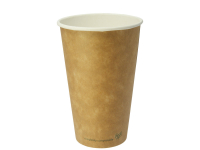 Hot Cup kraft PLA-lined 16oz (520ml Brim) - takes 89mm Lid. Eco single wall hot cup. Fits Vegware's 89-Series lids. For coffee, tea and all hot drinks, or soup to go. Also ideal portion control for chips or fried treats. Sustainable board with a plant-based PLA lining. Brown kraft, with Vegware messaging in green. Award-winning quality by Vegware, made from plants.