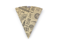 Cone kraft. (being discontinued - use TK01NPCONE once sold out, as alternative) Paper cones for chips, churros, fried bites, chestnuts, pretzels or any hot treats to go.. Leak-proof ergonomic cone with a grease-resistant lining. Sustainable card. Brown kraft colour. Award-winning quality by Vegware, made from plants, not plastic.