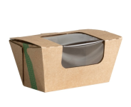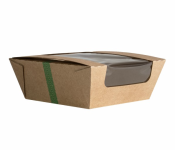 5 x 3in - Premium performance microflute hinged hot box with clear plant-based NatureFlex™ film window lid. Ideal for hot or cold, for delivery or food to go. Suitable for hot cabinets. Made from microflute corrugate board with a compostable inner coating. Plain brown kraft colour with Vegware branding. Award-winning quality by Vegware, made from plants. Designed for industrial composting - also suitable for home composting in NZ. Made from recyclable materials.