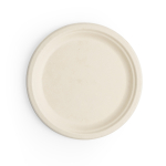 Plate Sugar Cane round natural 22cm - Price/pack of 50 (10/outer) Practical and stylish plate, in Vegware Nourish moulded fibre. Stronger than paper, more attractive than polystyrene. Great for hot or cold, and sturdy enough to load up with food. Our moulded fibre uses reclaimed natural material such as sugarcane, bamboo or wood pulp. Oatmeal colour for a natural look. Award-winning quality by Vegware, made from plants. Designed for home or industrial composting, made from recyclable materials.